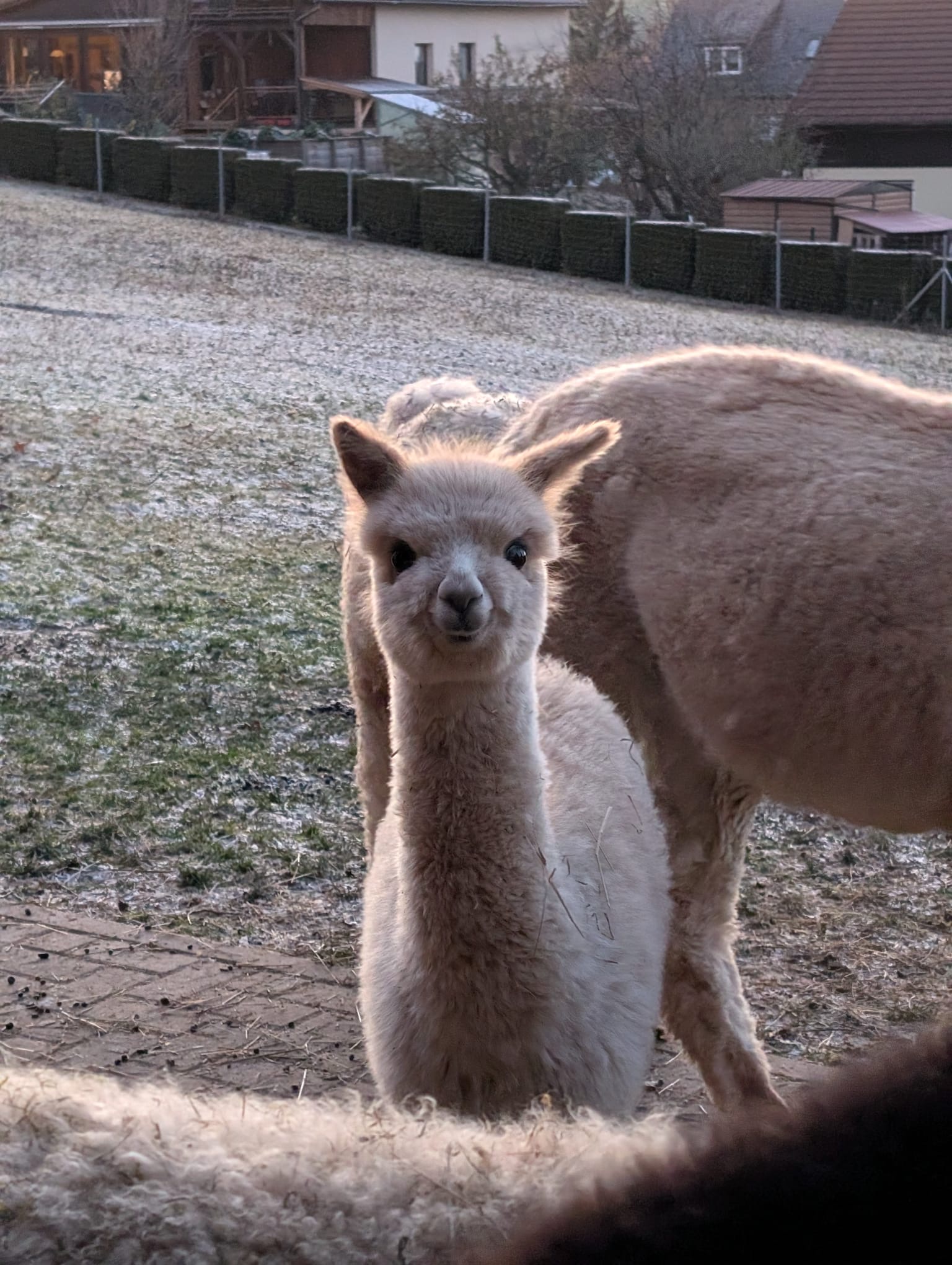 Unsere hübsche light fawn farbene Alpakastute Baileys ist am 01.09.2025 auf unserem Hof in Thüringen geboren und verzaubert uns seit ihrer Geburt jeden Tag aufs Neue.
